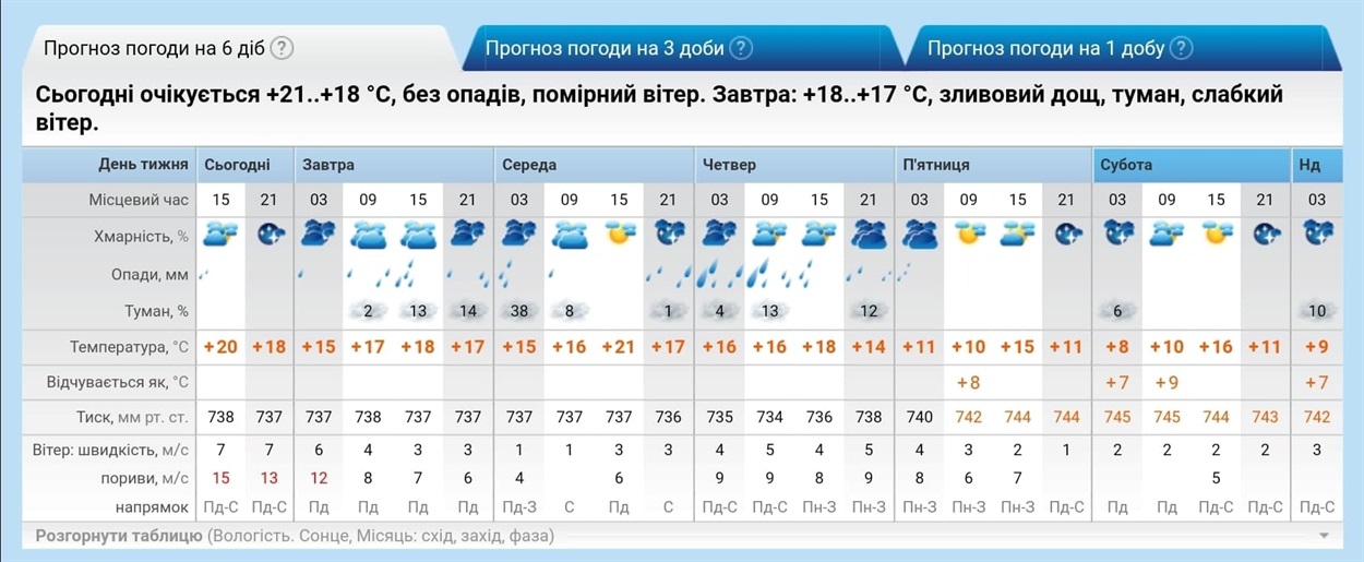 Такі ж прогнози дає ресурс meteo.ua - буде хмарно та дощитиме.