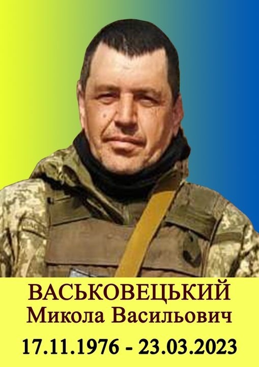 Завтра, 12 вересня, з 10:00 до 12:00 год. в приміщенні Гарнізонного будинку офіцерів відбудеться церемонія прощання із загиблим захисником України, молодшим сержантом ВАСЬКОВЕЦЬКИМ МИКОЛОЮ ВАСИЛЬОВИЧЕМ.