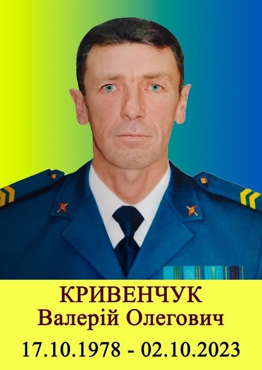 Завтра, 5 жовтня, з 09:00 до 12:00 год. в приміщенні Гарнізонного будинку офіцерів відбудеться церемонія прощання із загиблим захисником України, молодшим сержантом КРИВЕНЧУКОМ ВАЛЕРІЄМ ОЛЕГОВИЧЕМ.