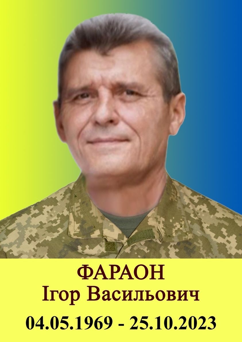 Завтра, 04 листопада, з 09:00 год до 12:00 год в приміщенні Гарнізонного будинку офіцерів відбудеться церемонія прощання із загиблим захисником України, штаб-сержантом ФАРАОНОМ ІГОРЕМ ВАСИЛЬОВИЧЕМ. Ігор був учасником бойових дій, помер від поранень і хвороби, пов’язаних із захистом Батьківщини, 25 жовтня 2023 року.