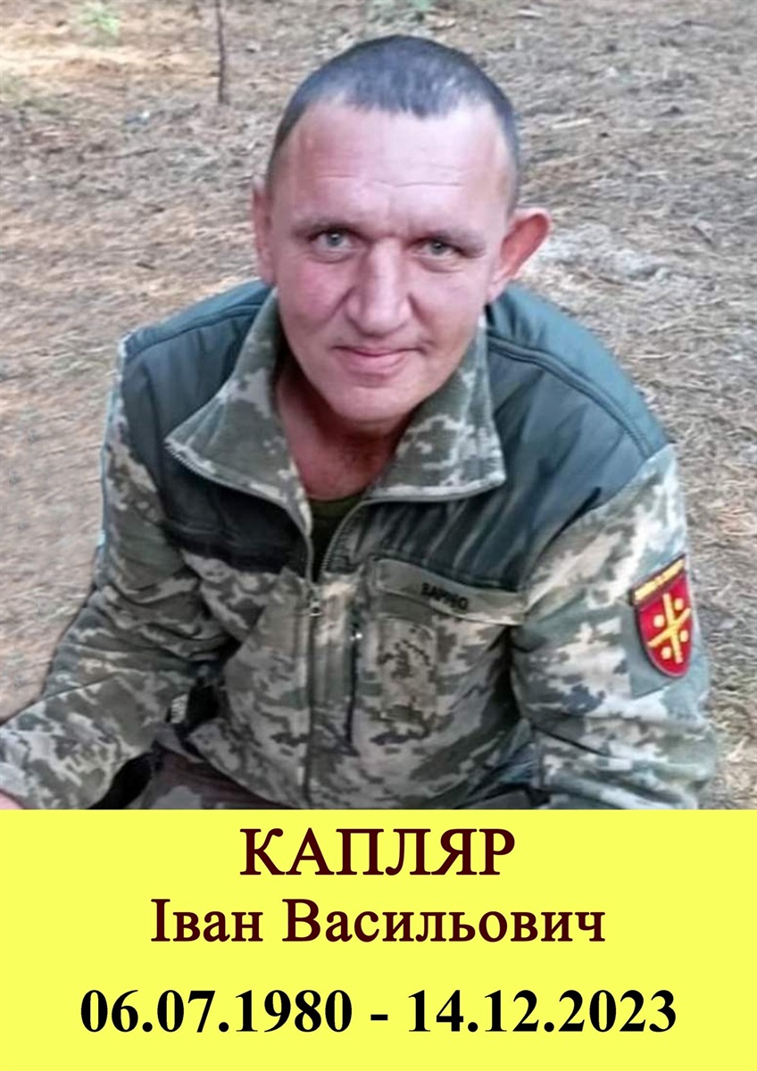 Завтра, 23 грудня, з 09:00 до 12:00 години, в приміщенні Гарнізонного будинку офіцерів, відбудеться церемонія прощання із загиблим захисником України, солдатом КАПЛЯРОМ ІВАНОМ ВАСИЛЬОВИЧЕМ.
