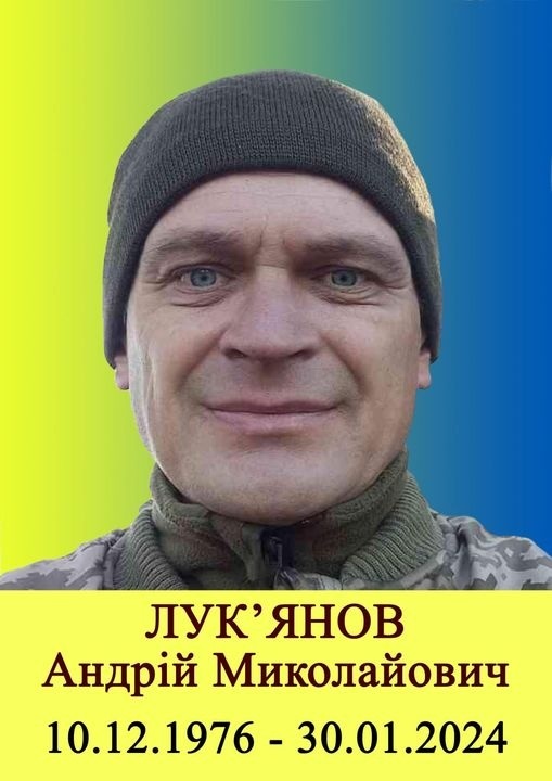 У понеділок, 5 лютого, у Старокостянтинівській громаді відбудеться церемонія прощання із захисником України, солдатом ЛУК’ЯНОВИМ АНДРІЄМ МИКОЛАЙОВИЧЕМ.