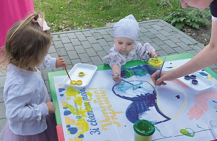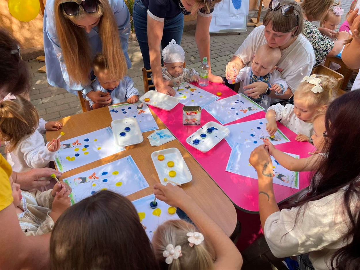 Маленькі вихованці разом із батьками та працівниками Центру активно долучилися до святкових заходів: створювали колективні малюнки, брали участь у веселих естафетах, танцювали та розфарбовували подвір’я крейдою, прикрашаючи його барвистими візерунками.