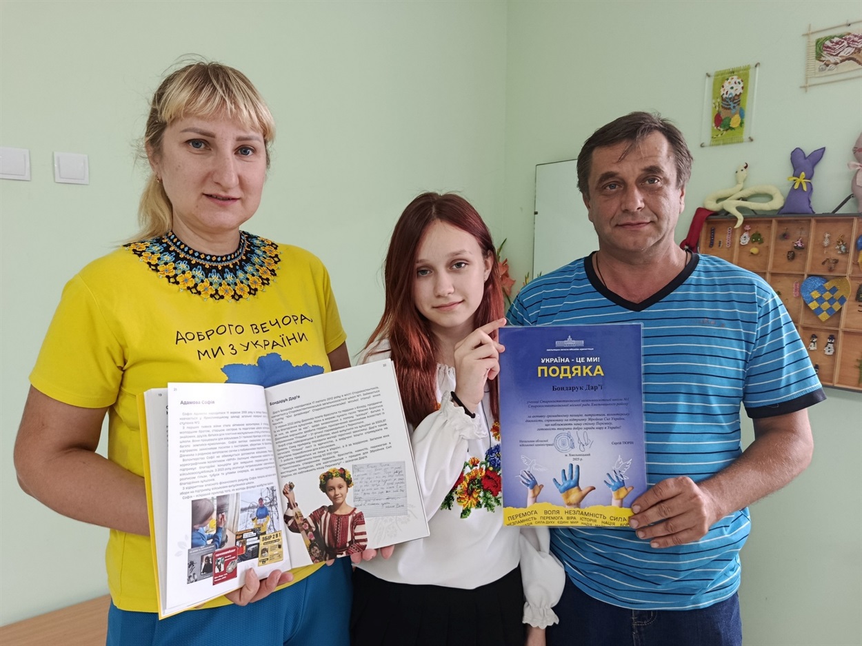 Дякуємо керівнику гуртка та родині Бондарук за підтримку Дар’ї, а також Архівному відділу виконавчого комітету Старокостянтинівської міської ради (керівник — Наталя Загоруйко) за постійний супровід та допомогу в організації участі у заході.