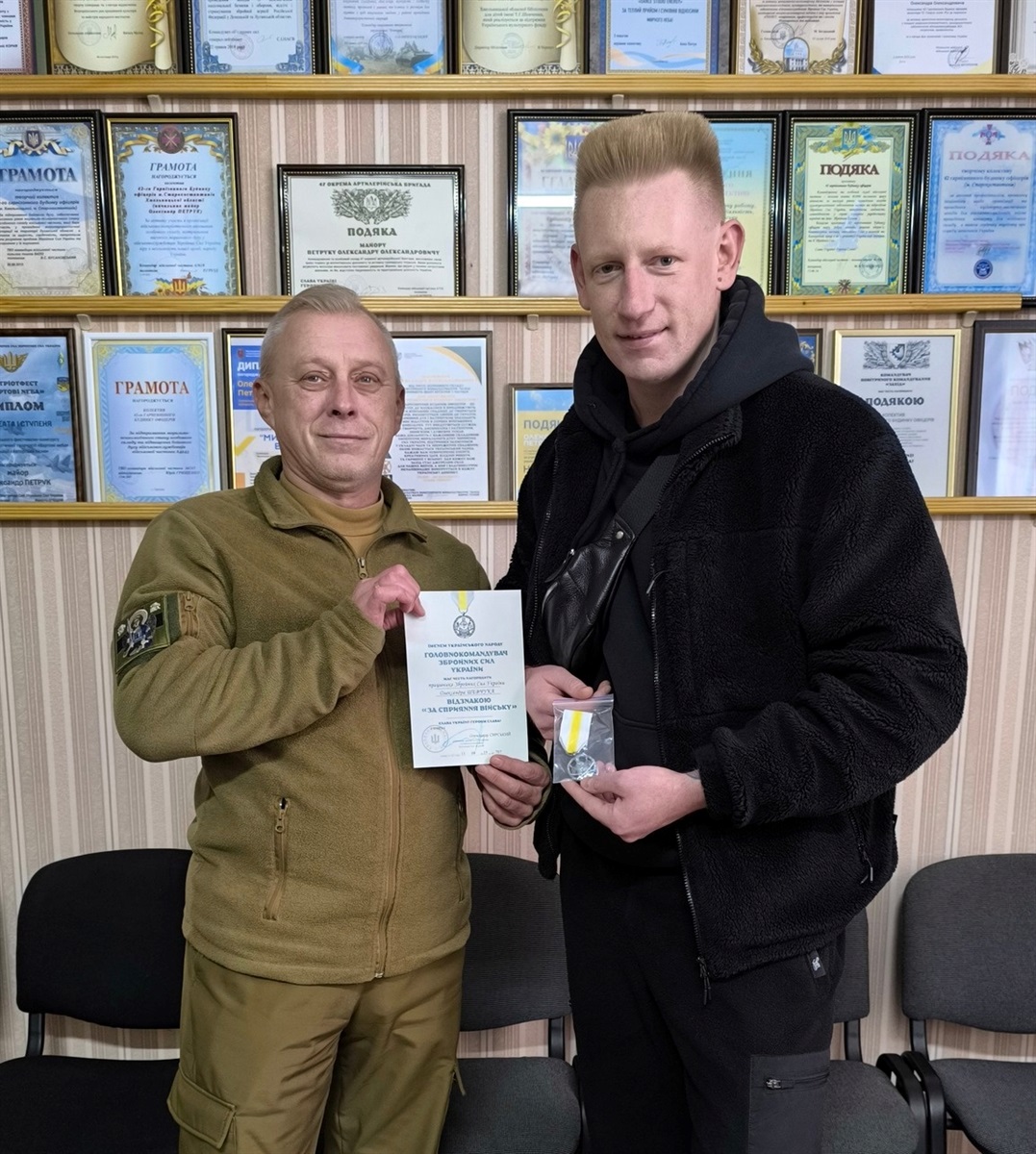 За значний особистий внесок у справу розвитку та забезпечення життєдіяльності Збройних Сил України, високі професійні досягнення та зразкове виконання службового обов’язку в умовах воєнного стану керівник гуртка ДЮСТК «ДАНС-ЛІЦЕЙ», що працює на базі 42 ГБО, працівник Збройних Сил України Олександр Шевчук відзначений почесним нагрудним знаком Головнокомандувача ЗСУ “За сприяння війську”.