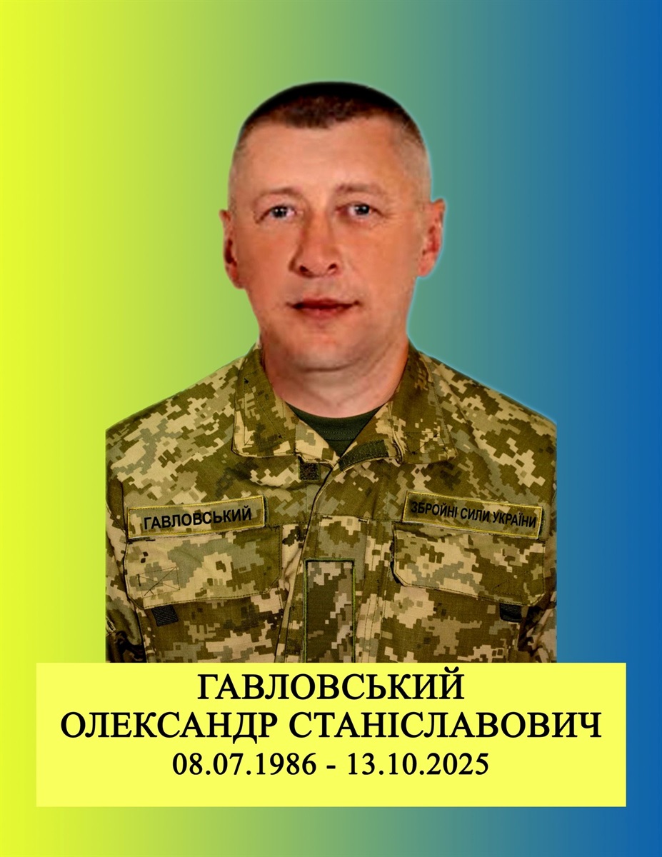 У вівторок, 21 жовтня 2025 року у Старокостянтинівській громаді відбудеться церемонія прощання із захисником України – солдатом ГАВЛОВСЬКИМ ОЛЕКСАНДРОМ СТАНІСЛАВОВИЧЕМ, 1986 року народження.