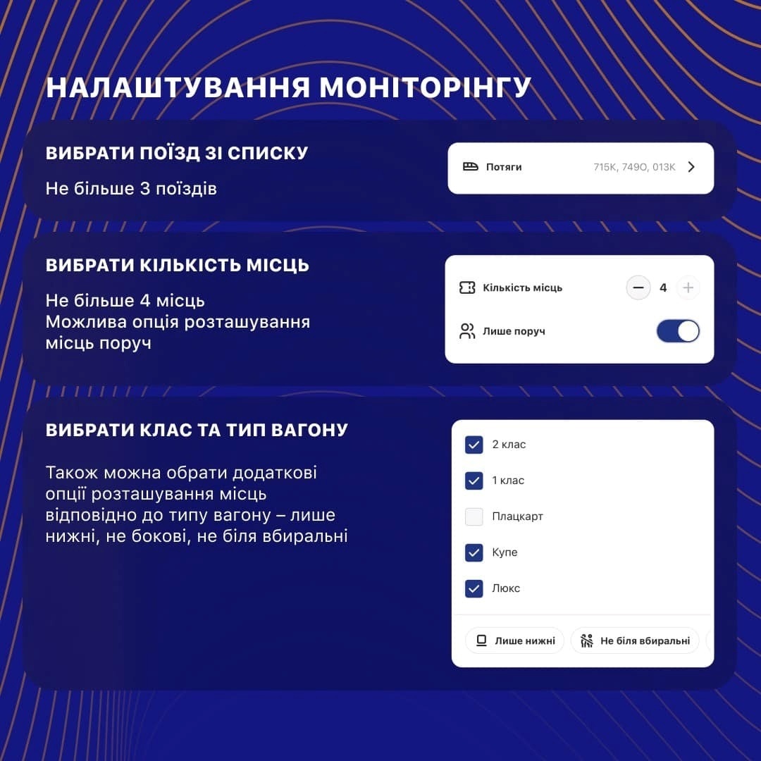 Моніторинг і автовикуп недоступні для поїздів до/з Польщі (окрім «Інтерсіті+») та для прямого маршруту Київ — Відень.