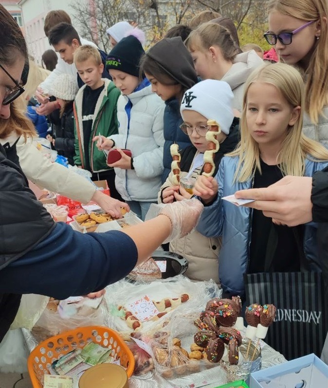 Заклад дошкільної освіти №2 «Зайчик» організував благодійну ярмарку на алеї біля ЗОШ №1, де продавали домашні смаколики, приготовані працівниками, батьками та вихованцями дитсадка.