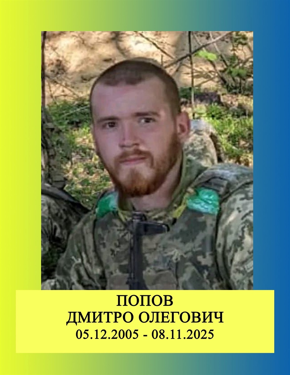 У вівторок, 11 листопада у Старокостянтинівській громаді відбудеться церемонія прощання із захисником України — солдатом ПОПОВИМ ДМИТРОМ ОЛЕГОВИЧЕМ, 2005 року народження.