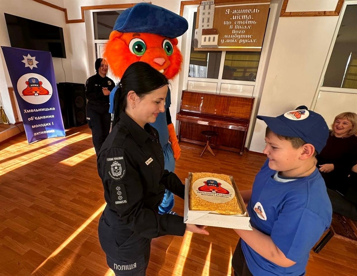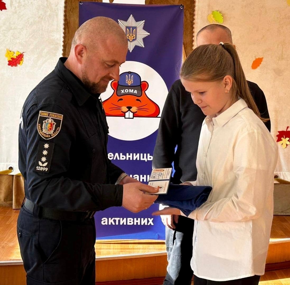 Почесним гостем заходу став начальник відділу ювенальної превенції управління превентивної діяльності ГУНП в Хмельницькій області, полковник поліції Сергій Цимбалюк. Він урочисто вручив школярам посвідчення членів МППР «ХОМА».
