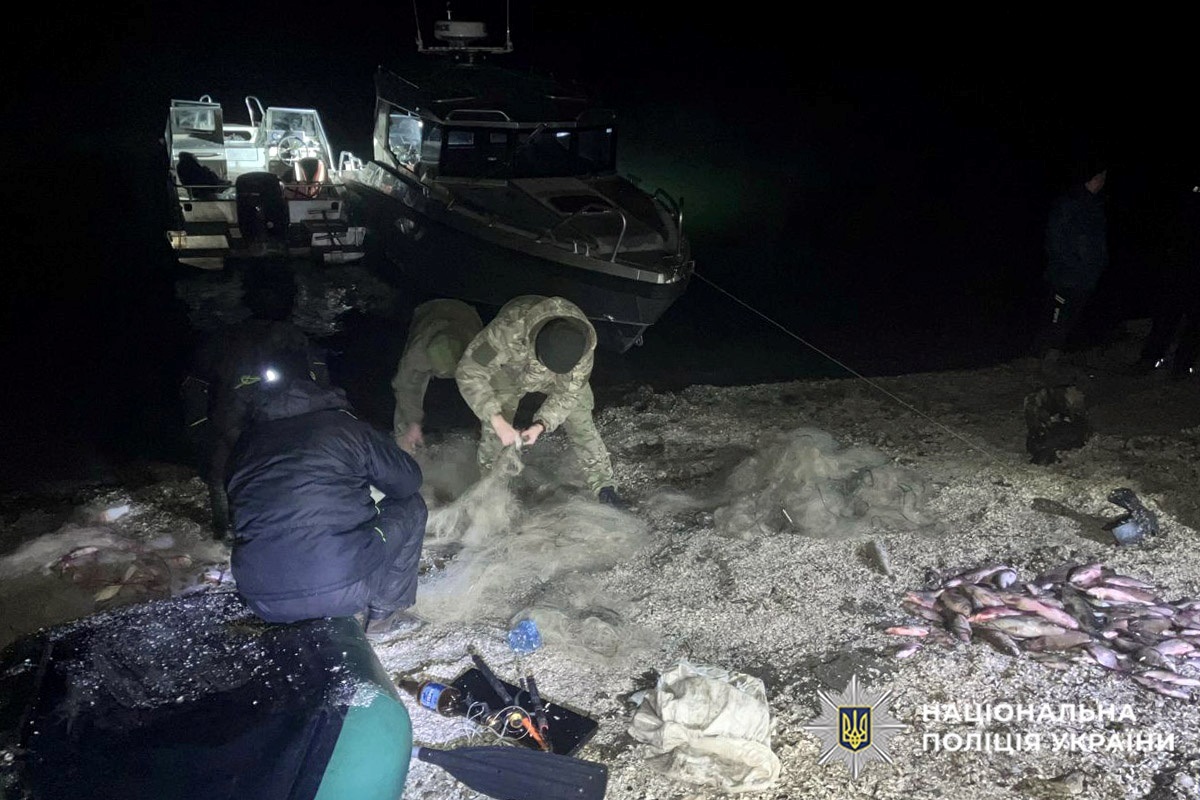 Правоохоронці вилучили човен, сітки та незаконно виловлену рибу. За фактом незаконного зайняття рибним промислом відкрито кримінальне провадження за ч. 1 ст. 249 Кримінального кодексу України.