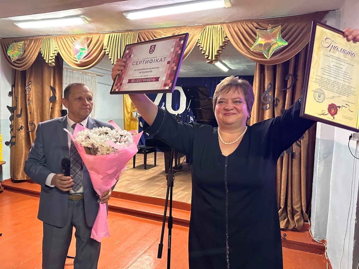 З вітальним словом виступив міський голова Микола Мельничук, який привітав колектив і подарував школі сертифікат на придбання музичних інструментів на суму 150 000 гривень.