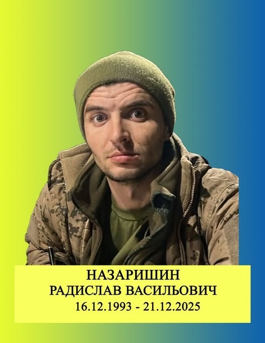 У суботу, 27 грудня 2025 року у Старокостянтинівській громаді відбудеться церемонія прощання із захисником України - солдатом НАЗАРИШИНИМ РАДИСЛАВОМ ВАСИЛЬОВИЧЕМ, 1993 року народження.