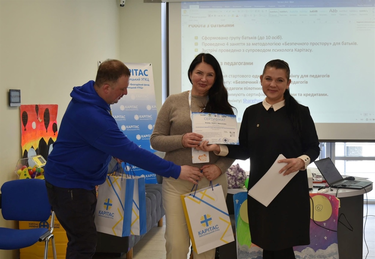 Старокостянтинівський НВК «Спеціалізована школа І ступеня, гімназія» долучився до другого етапу проєкту «Стійкість і розвиток», спрямованого на посилення психосоціальної підтримки дітей в умовах воєнного часу. Директор закладу Лариса Боднар та практичний психолог Сергій Цудзевич взяли участь у стартовій зустрічі-тренінгу «Психосоціальна підтримка в освіті через розвиток трьох ідентичностей фахівця», організованій Карітас Хмельницький УГКЦ.