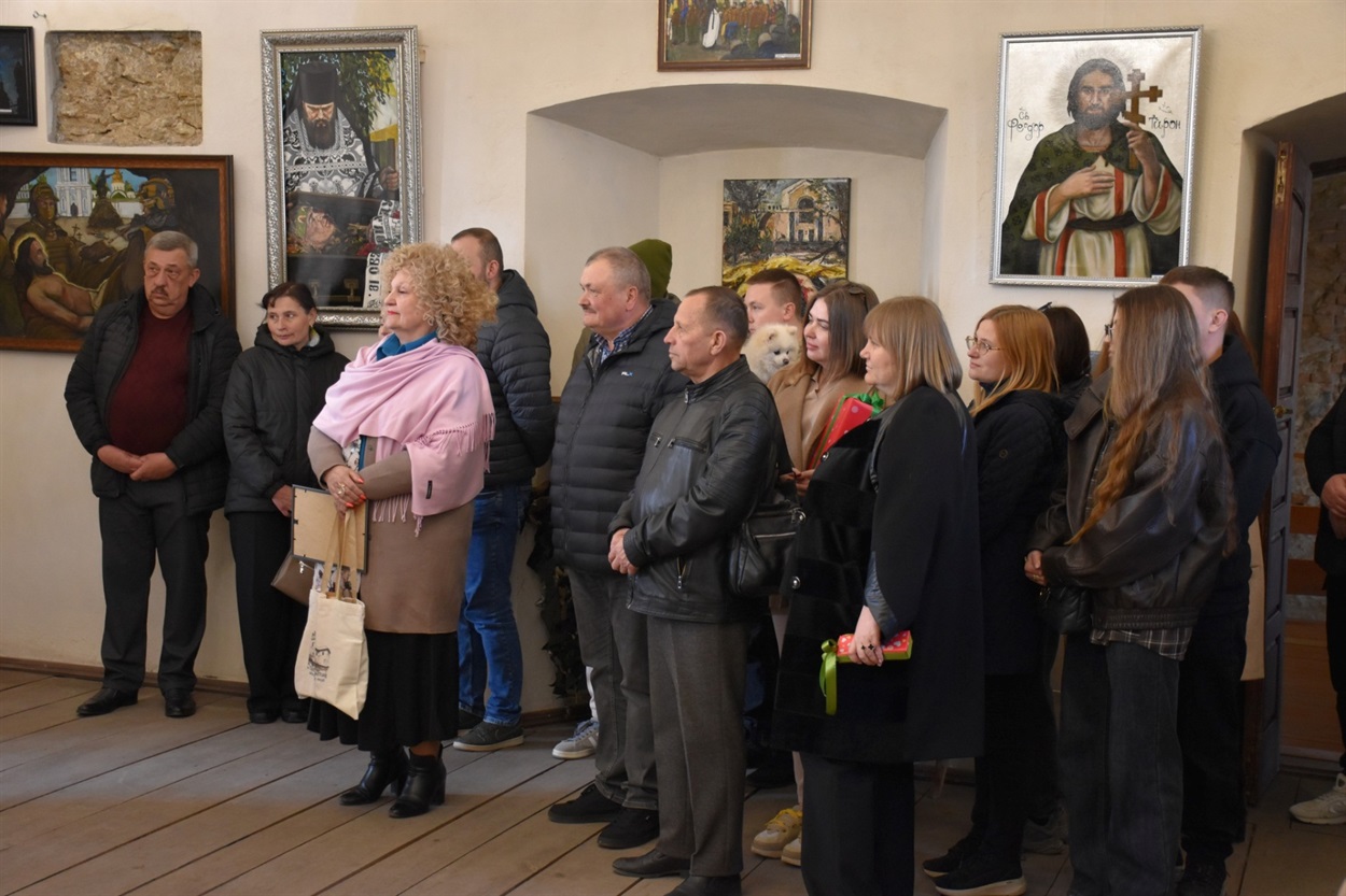 У затишній залі зібралися рідні, близькі, друзі та шанувальники мистецтва, аби підтримати автора та долучитися до важливої культурної події громади. Експозиція об’єднала картини, які умовно можна поділити на дві теми — духовну та суспільну. Водночас їх поєднує спільний мотив, що сьогодні торкається кожного українця, — тема війни.