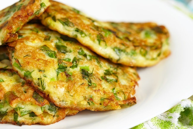 Приготування. Зелену цибулю порізати і розім’яти з сіллю до появи соку. Додати яйце, сметану, борошно. Погасити все содою. Обсмажувати оладки з двох сторін.