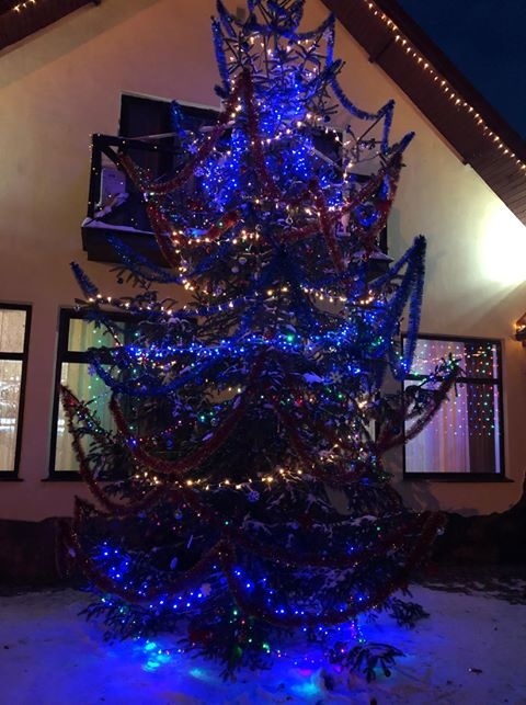 Біля ресторану «Фієста» — зимова феєрія теплих новорічних вогників. Природня атмосфера Різдва не відпускає, гарні фото зробити нескладно.