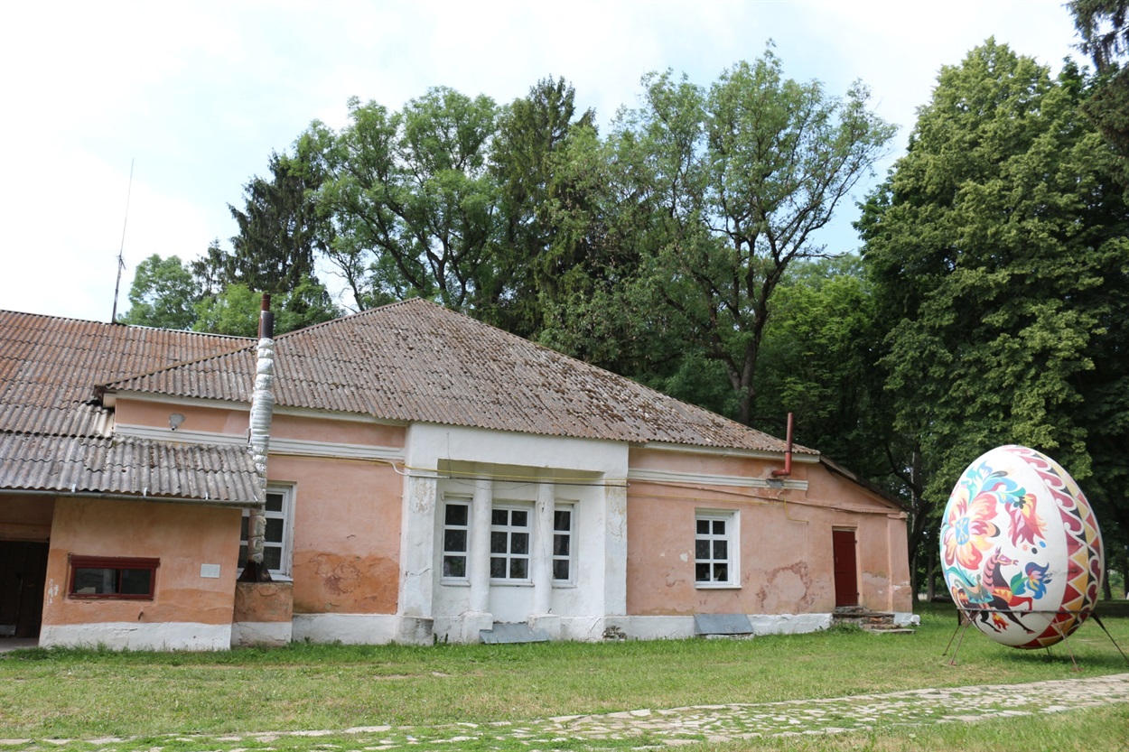 На території маєтку, є з вигляду досить непримітна та довга будівля. А насправді це палац перших тутешніх господарів — Хоєцьких, які заклали його у 1715 році.